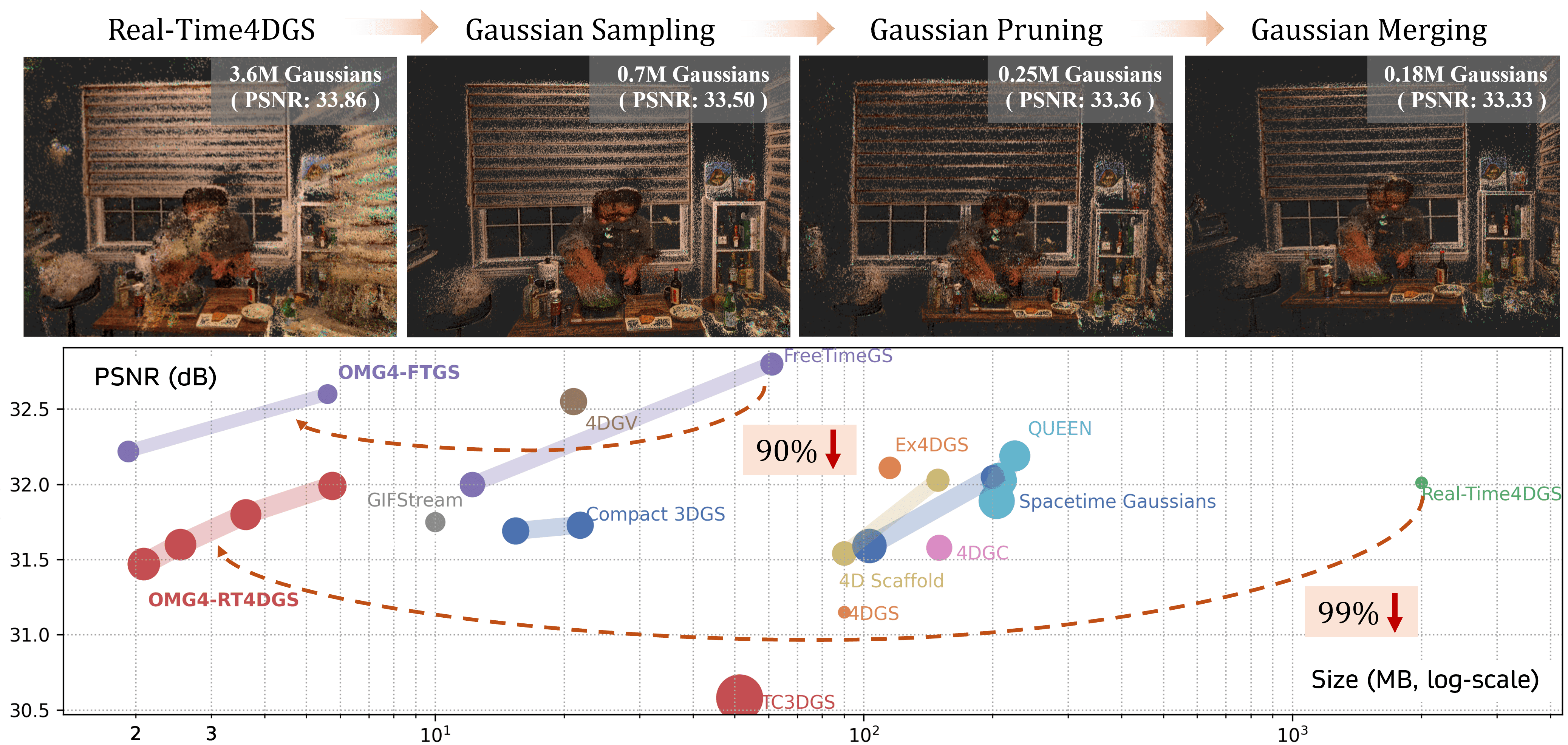We present OMG4 (Optimized Minimal 4D Gaussian Splatting), a framework that constructs a compact set of salient Gaussians capable of faithfully representing 4D Gaussian models.